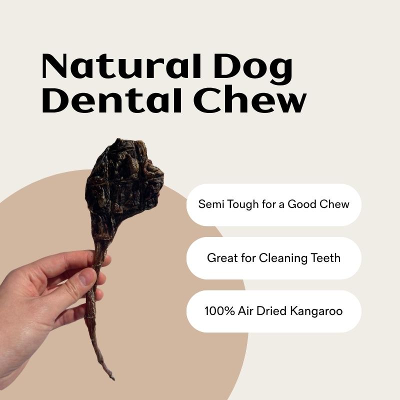 Roo Tendons are the ultimate natural dental chew that cleans your dog's teeth without chemicals and gives your dog a minty fresh breath! đ