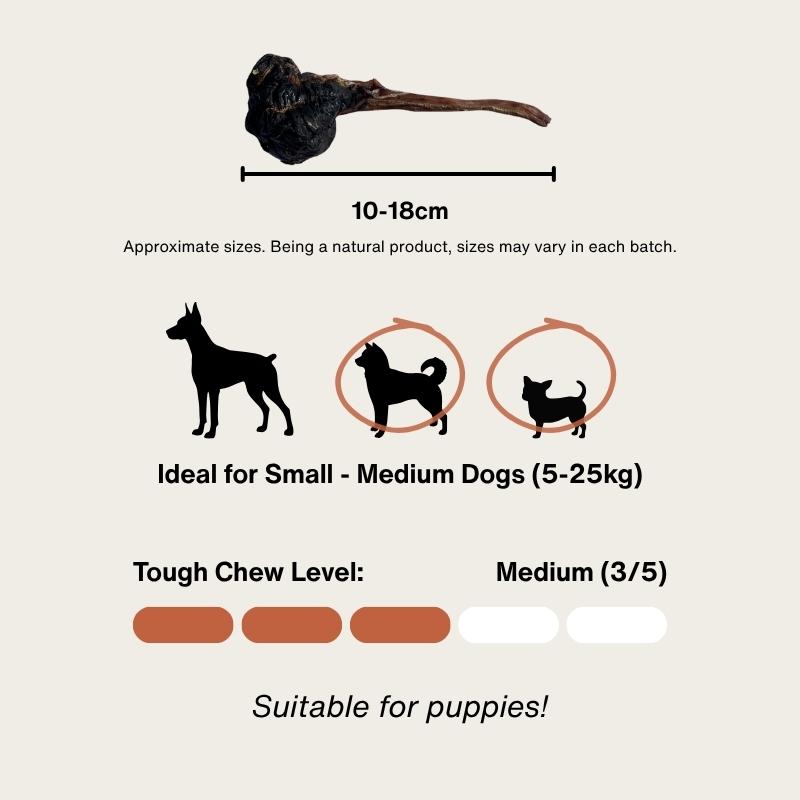 Please note that this is the short variety of Roo Tendons. Suitable for Toy to Medium Breeds. If you want longer/larger ones, please see our Long Roo Tendons.Â